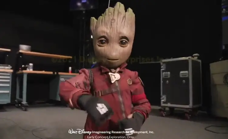 于是,在2017年的时候,迪士尼是在西南偏南音乐节上宣告,要在乐园当中推出卡通形象机器人。在经历了多年的研发以后,到了2021年,他们带来了以《银河护卫队2》里的小树人格鲁特作为原型的机器人,它的身高仅仅只有76cm,这个它能够眨眼,还可以做一些简单的动作存在着,不过在智能化的交互方面是有些欠缺的。
