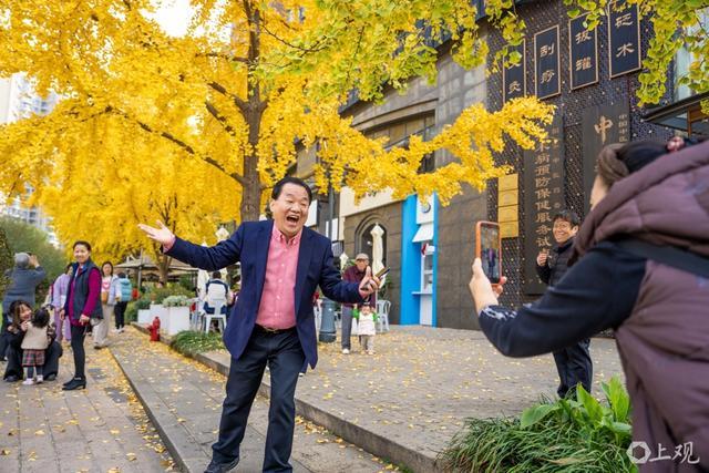 秋风带来凉意之际,长宁区黄金城道走入一年里最美时段,市民与游客纷纷在街边漫步,相约于金色浪漫之中。六旬上海爷叔陆永江是附近的居民,在此居住了20多年,在 黄金城道“赏秋”成为他每年必定要做的事情之一。他以金黄的银杏树作为背景,唱起了属于他的青春之歌《橄榄树》,并且兴致勃勃地跳起了骑马舞。他还让太太给他拍下视频,用来作为留念。
