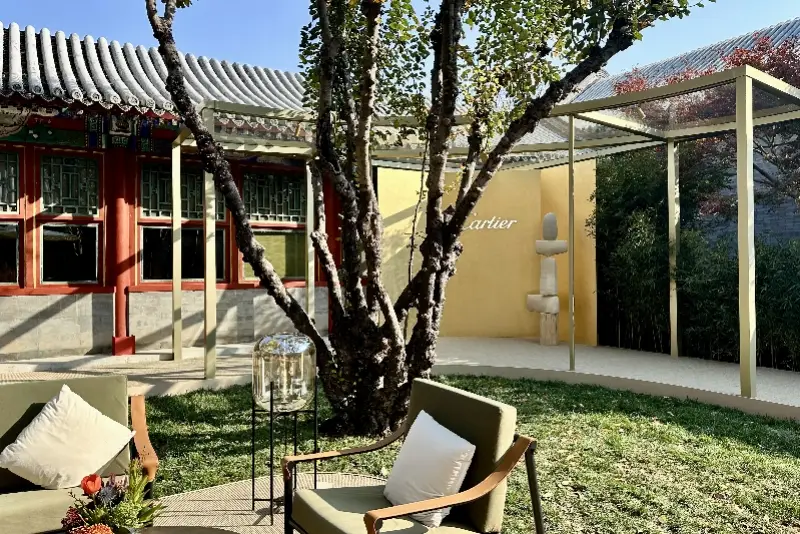 南都N视频的记者,在11月的时候,去过该酒店参与品牌活动了,对于度假酒店来讲,整体面积处于中规中矩的状态,客房主体都是四合院式的围院布局,公共空间被绿植覆盖着,红墙绿瓦以及曲折连廊,都有着极为浓厚的皇家园林氛围。平日里,酒店入住的客人数量不多,所以空间感和私密性都相当不错。酒店侧廊那儿,有通往颐和园东区的小门,通常是锁着的,住客能够联系酒店客服来开门,从这个门前往颐和园著名的打卡点谐趣园,大概只需步行5分钟。源自特殊的地理位置,以及酒店所营造的氛围,众多奢侈品牌会挑选此地来举办活动。在11月的时候,举行了拉夫劳伦的年度活动。与此同时,还举办了卡地亚的年度活动。