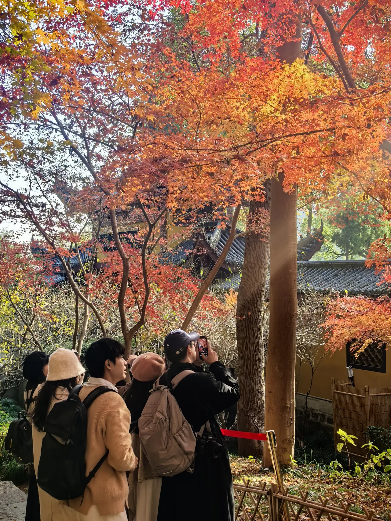 近日,那一年一度的飞来寻枫活动方才刚刚开启帷幕。实际上,今年的枫情较往年而言更早地降临了。在十二月初的时候,不少老杭城人就抑制不住内心的冲动,纷纷朝着飞来峰景区赶去。而此时,恰恰正是景区施行免费开放、每日进行限量预约的首个星期。当身处枫景的现场时,既得以遇见“九里云松十里枫,林下片片映山红”这般的壮阔景象,又能够感受到“溪山处处皆可庐,飞来峰下人从众”那般的热闹氛围。