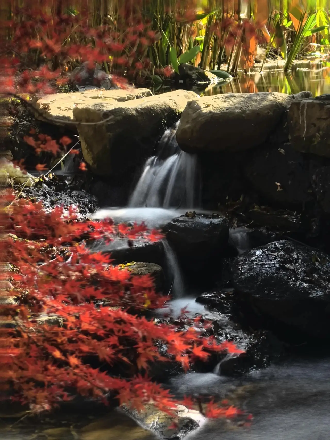 飞来峰那儿的枫,跟千年石刻相互依偎着,古佛造像所具备的庄严呀,和红枫展现出的艳丽相互融合在一起,由此刻就了那历经岁月沉淀后才有的韵味,每一处石佛跟红枫互相拥簇的情形,皆是历史跟自然进行的深情对话。玉液幽兰景区处于清幽的氛围里头,石佛静静躺卧在崖壁的旁边,虽说年代没到特别久远,可已然遭受风雨的侵蚀,其神情慈悲又安详,纹路清晰可见。周边有几株红枫直直挺立着,纤细柔弱却又鲜艳的枝叶朝着上方生长,刚好有几绺映照出石佛的身影,阳光洒落下来,红叶透亮,石佛温润,一排排的小石佛因为有红枫陪伴而多了几分浪漫的感觉,红枫因为有石佛的加持而更增添了几分深沉。