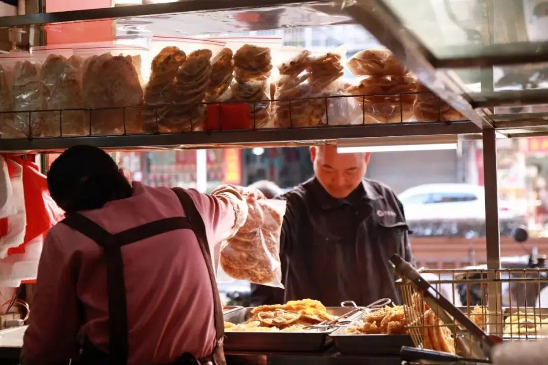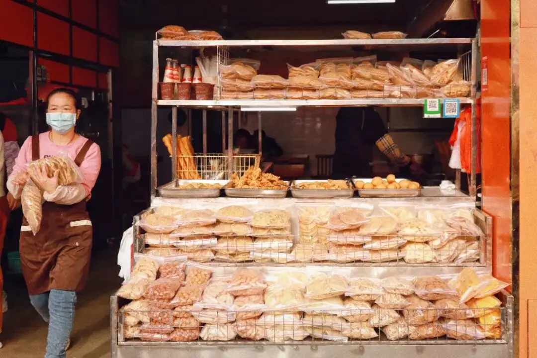 早餐店门口摆出来的打包好的小吃