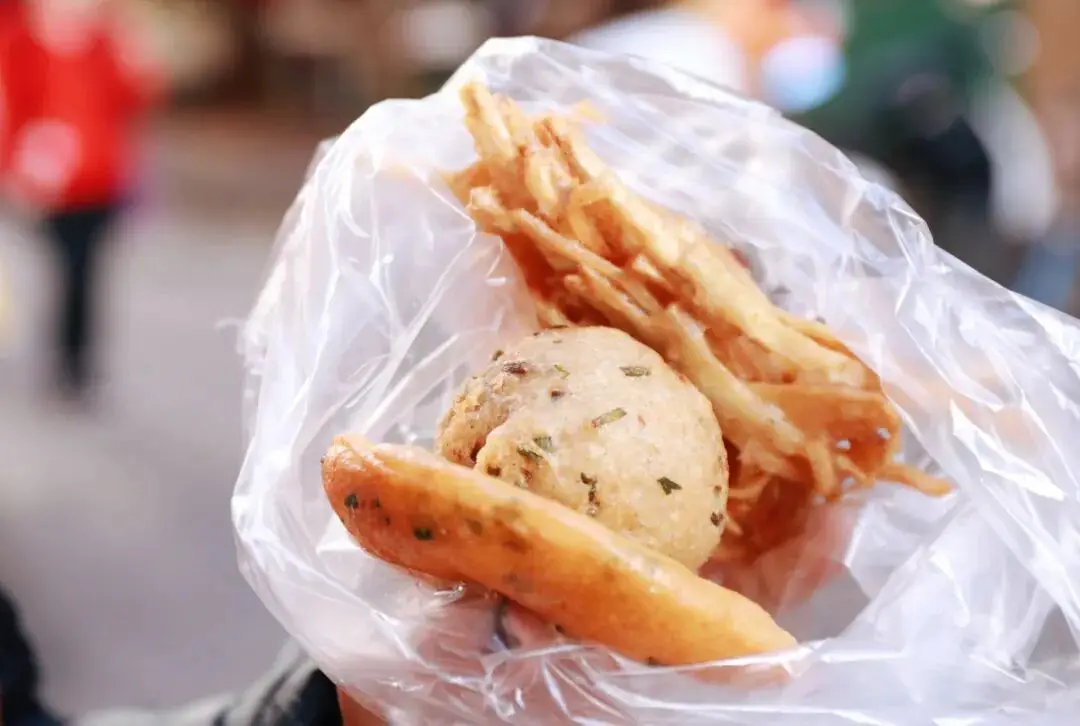 每样都可买一个,按从上到下的顺序来讲,先是炸芋条,接着是分别不同于炸芋条的炸芋头丸子,最后是与两样都不同的炸豆浆糍。