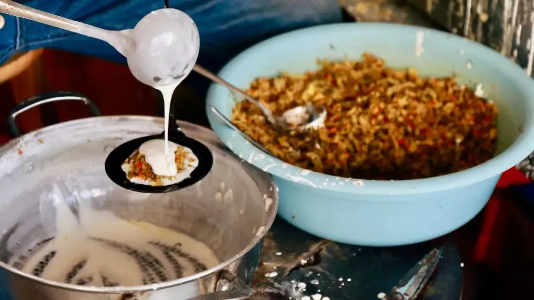 经典小吃饺俚糍的馅料就是酸菜和茄子。