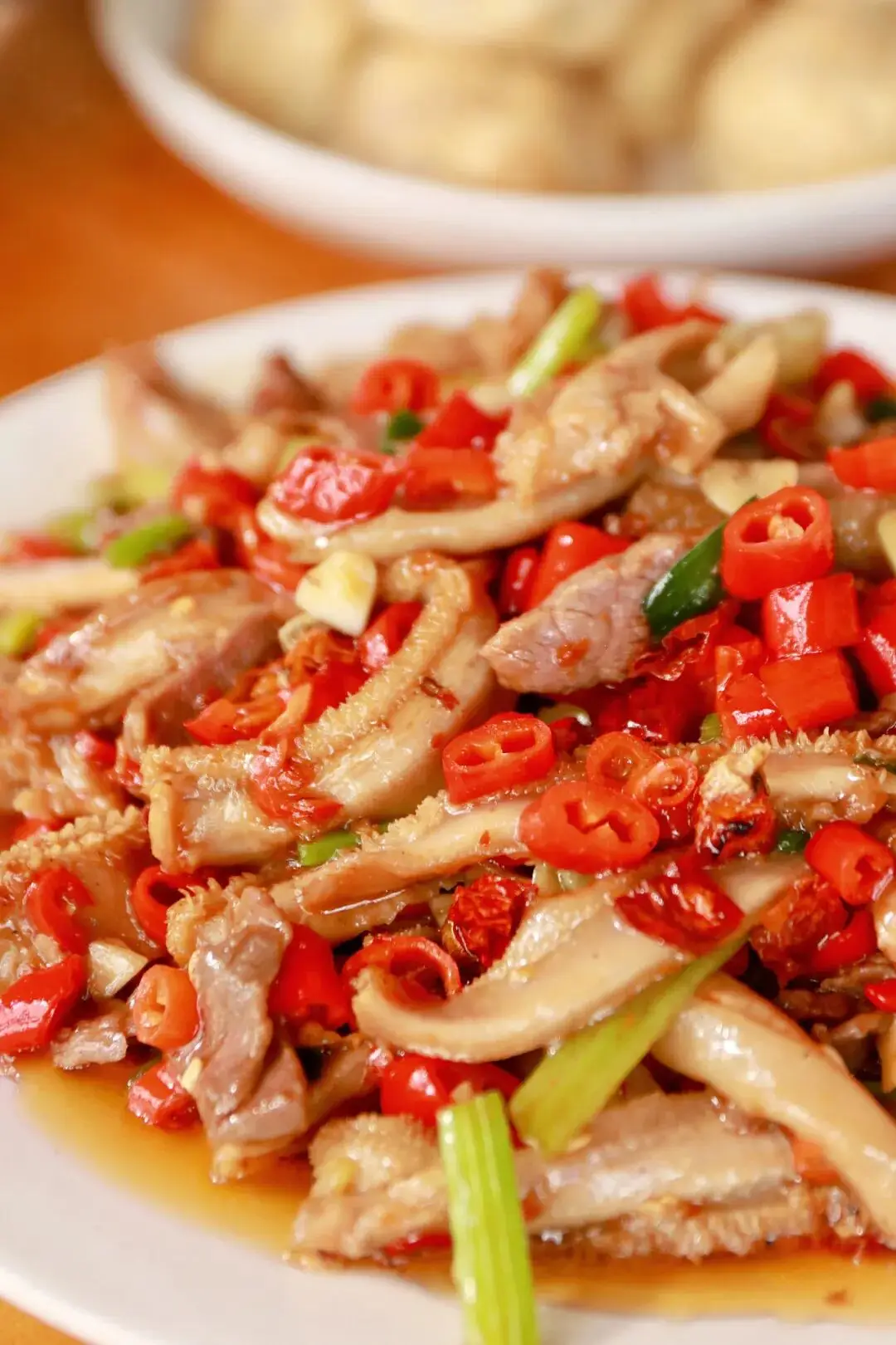 这是一道极具特色的菜,直接品尝时,咸淡恰到好处,若蘸上酱汁食用,虽会偏咸,然而却不容易让人感到腻味,并且还能够提供些许香辣味道呢。