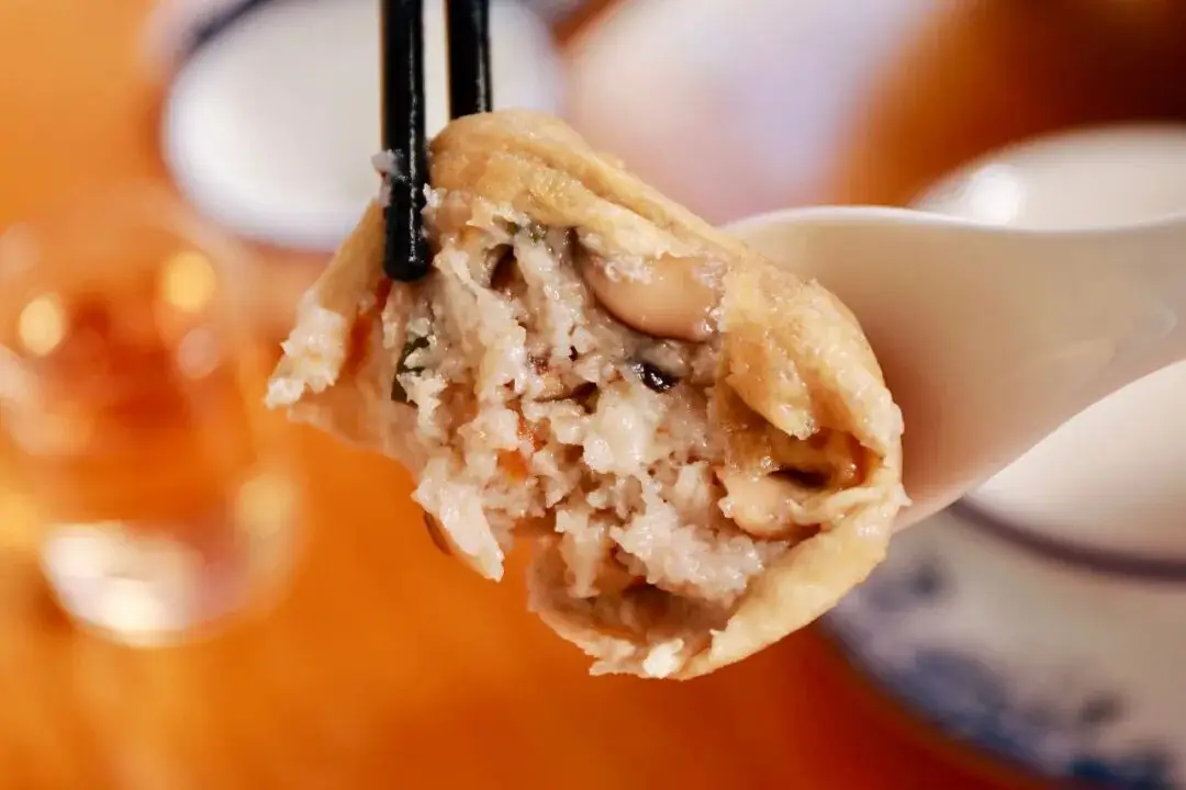 与我所熟悉的酿豆腐完全不一样的南雄酿豆腐,其馅料竟然是满满的芋泥、香菇和肉,倘若不是那需要进行咀嚼的薄薄一层豆腐皮,那绵滑的馅料是能够直接滑入喉咙的。