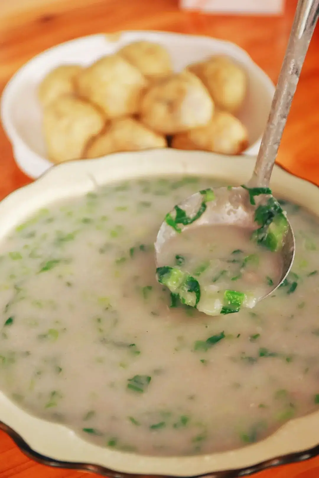 青菜芋浆尝起来也是相当不错的,口感十分细滑且带有颗粒感,能够起到解辣的功效。由此不难发现,南雄人对于芋头也是有着相当程度的偏爱的。