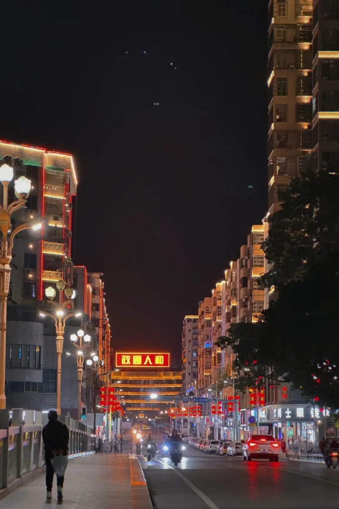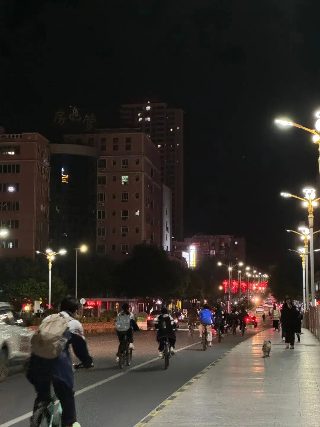 在享用完毕晚餐之后,为了消化食物而迈开脚步散步,途经了青云桥,此时,那些结束晚自习放学的学生骑着自行车风驰电掣般迅速经过,而路口处的灯笼已然被点亮,这样的氛围仿佛就如同过年时候的样子。