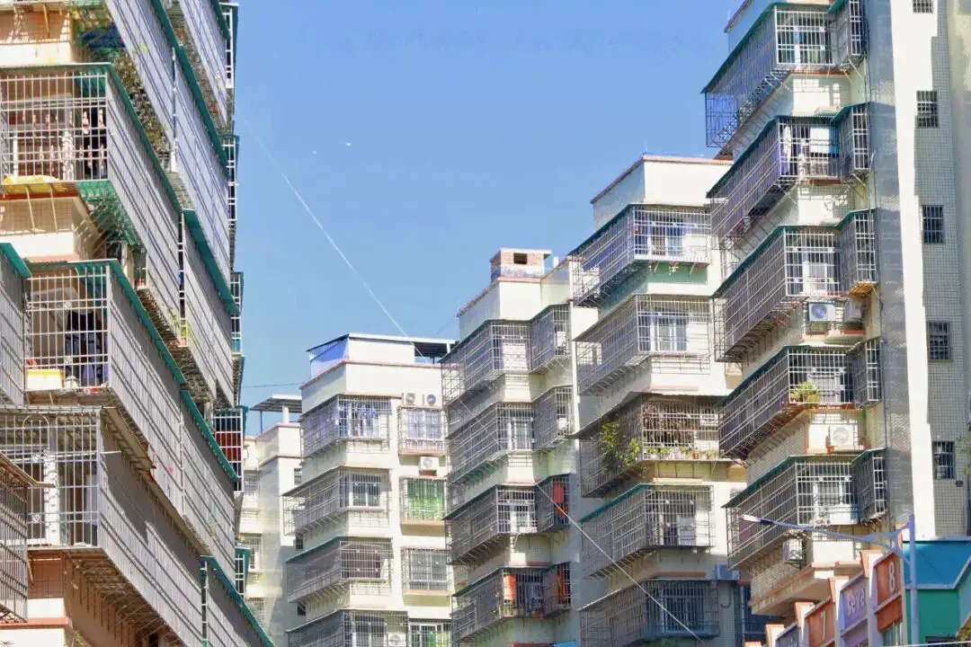 在街上,跟小伙伴笑着说道,那从外头看,他们的窗户都是很大的,由此感觉房子的面积应该也都是很大的,只是那整齐划一的防盗网,看着是密集了一些。
