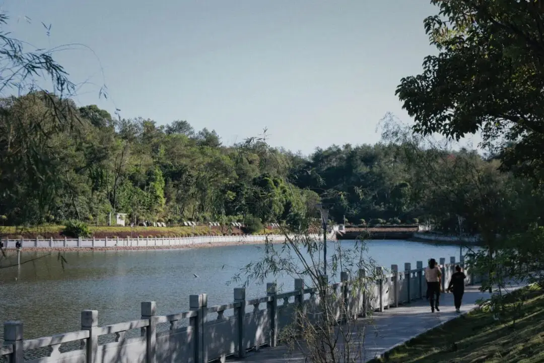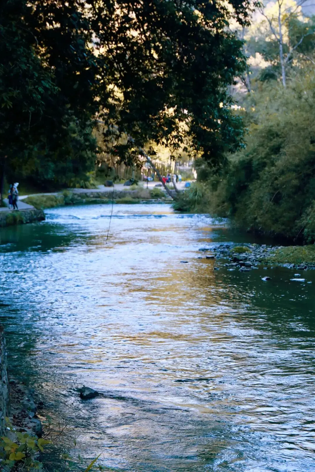 你在走路进入的时候,会路过一段河流,我是相当喜欢它的,水流并非湍急之势,有一端能够倒映出银杏以及太阳的金黄色,从而更增添了静谧之感。