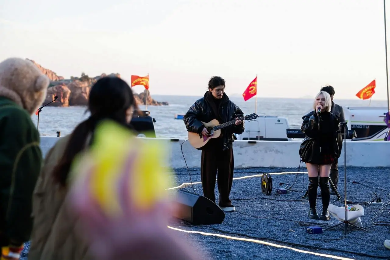 在活动当日之时,虽然冬日的清晨携带着些许微微的凉意,然而却有不少的游客早早地就抵达了相应的现场,于“蓝调时刻”那种静谧的氛围里面聆听着悠扬的旋律,并且跟随萦绕耳畔的海浪声静静地等待着日出的出现。