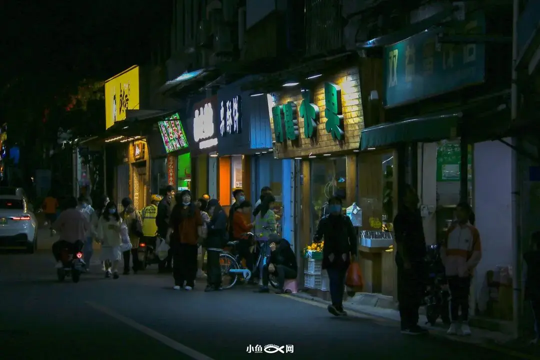 溜着狗的大爷,穿着拖鞋,脚步闲散,削荸荠那位老板娘,刀法飞快,那儿每日播“最后三天要搬迁”的特惠百货,几年过去依旧还在,巷口“桃花坞”酒吧的灯光,好像永远都不会熄灭 。