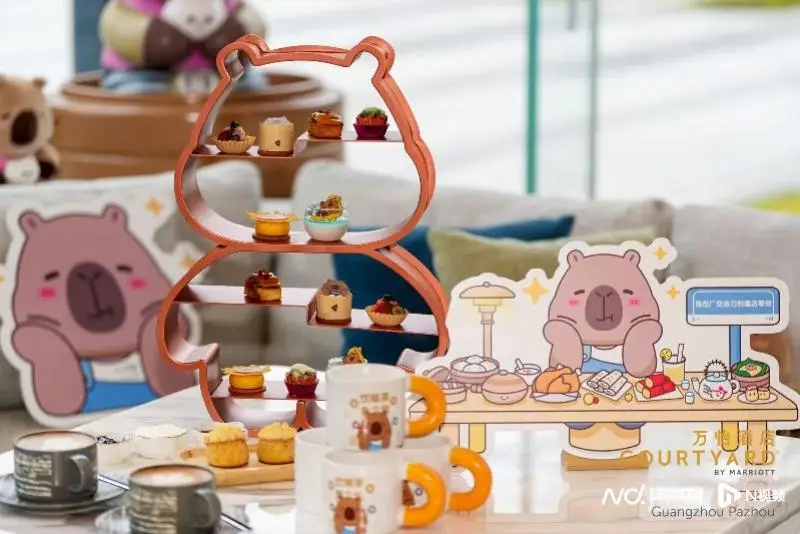 酒店吉祥物“万叔公”,其灵感源自广州“包租公”概念,它带着一系列IP周边,“守在”酒店,成了入住宾客竞相追捧的“明星”。特别是入住“万叔公主题房”的宾客,能领取万叔公集章本,在酒店里打卡探索,集齐5枚印章便可领取一个“万叔公”玩偶。套房里配置了万叔公定制主题床品、童装浴袍、主题地毯等。