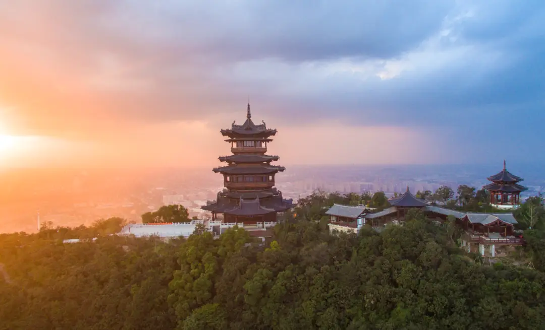 望宸阁,是宋式建筑,它一共有五层,高度为四十二米,高高耸立于半山主峰的顶上,和吴山城隍阁在南北方向相互呼应,它东边环绕着上塘河,西边紧挨着杭州塘,向北能眺望超山,向南可远眺杭城,在天气晴朗空气清新的时候,就能够看见钱塘江,真可谓是天堂般美好的胜景,全部都收入视野之中 。