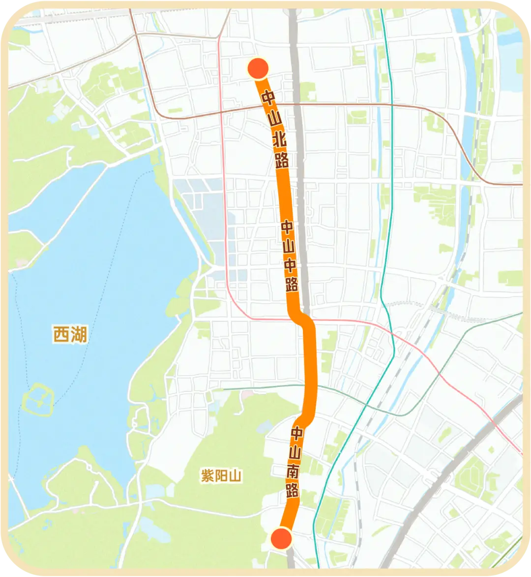 起点为南宋皇城遗址,终点是京杭大运河的这条道路,全长6.5公里,它横跨了杭州千年的历史轴线。在这条路上,你能听到800多年前南宋御街车马发出的喧嚣声。你能看到民国时期被称作“杭州华尔街”的地方的银行大楼。你还能闻到现代杭州最具烟火气息的小吃所散发出来的香气。