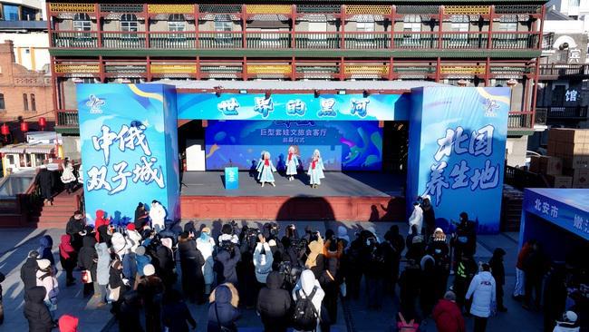 在众多镜头以及目光的聚焦之下,红绸轻轻落下,彩球腾空了起来,打开巨型套娃的门扉,映入眼帘的是浓缩了黑河整个区域的文旅精华。黑河市文化广电和旅游局相关工作人员介绍说,“我们带着黑河的诚意,以套娃作为信物,来到哈尔滨这座流淌着中西文化的街区。”黑河与俄布市隔着江相望,拥有独特的文化底蕴以及开放姿态,此次把文旅会客厅“搬”到哈尔滨,不只是一次温暖的推介,更是携手打造“温暖龙江”名片,深耕“下一站黑河”消费心智的有力举措。