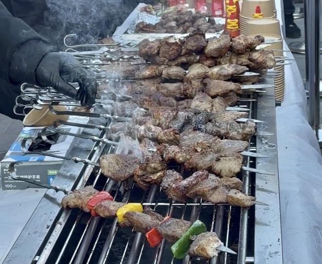 在活动现场,有一个5米高的“擎天肉塔”,它正缓缓地旋转着,俄式肉串在上面滋滋地渗出油香,这油香与在空气中飘散着的红菜汤、大列巴的温暖气息交织在了一起。有身着彩裙的舞者,她们随着《卡林卡》《民族情》的音乐翩跹跃动着,小提琴曲《胜利》《紫色激情》,其旋律或昂扬或深邃,弦音如诉,而一首《喀秋莎》瞬间就把现场的气氛点燃了。游客们在这里驻足流连,他们进行拍照、品尝美食、参与互动,在這处微缩的“黑河客厅”里感受着黑河的无限魅力。身材高挑的辽宁游客葛微,吃着那比自己胳膊还要长的大肉串,望着高高的套娃屋,看着正在进行的节目表演,直点头,嘴里说着,太豪横了,黑河我非得去一趟了!