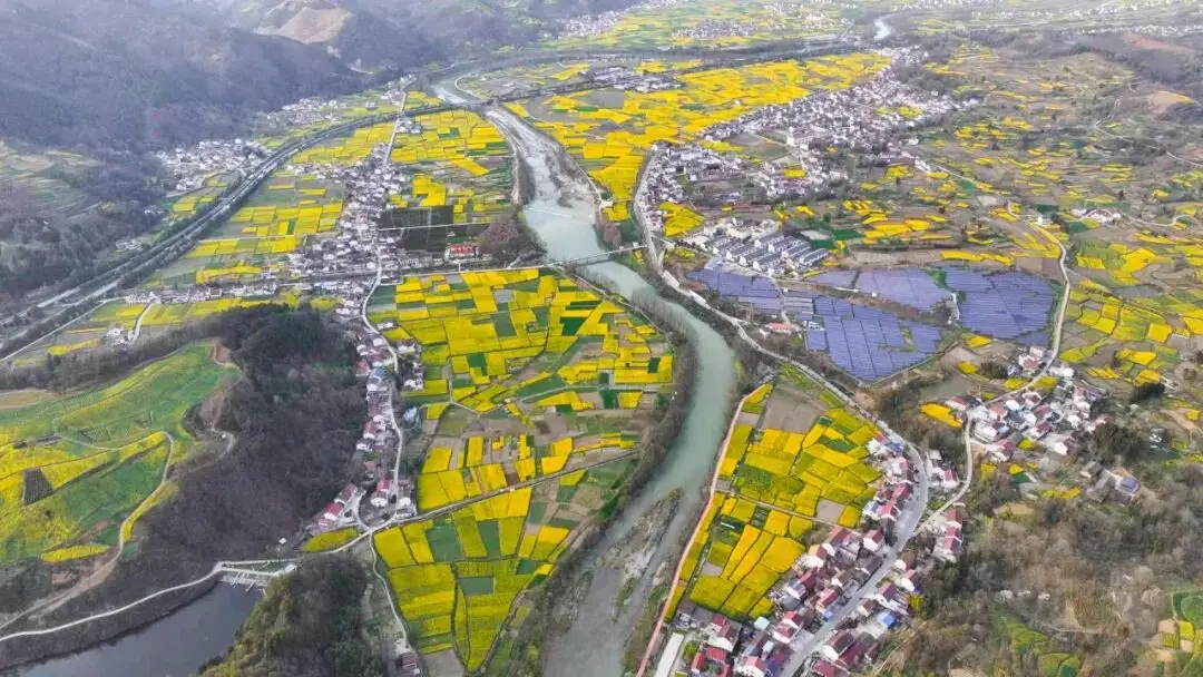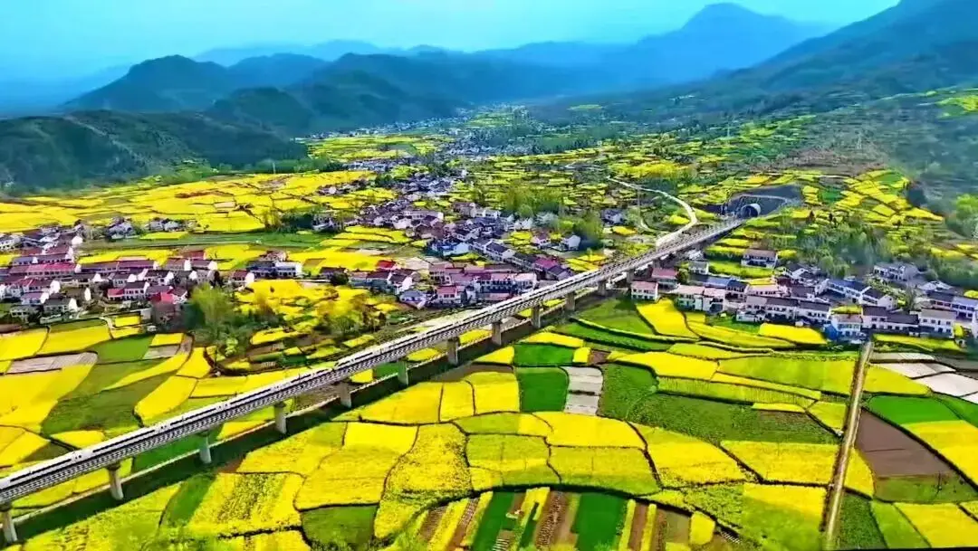 在汉江两岸的沃野之上,金黄以或千亩或万亩的分量肆意舒展延伸,恰似把天地间的调色板给打翻了,从而将平川还有丘陵晕染成那一片金色的海洋。当风刮过来的时候,花浪开始翻涌起来,携带着清冽的甜香漫漫越过田埂,满满蹭过白墙黛瓦的村落,徐徐淌过青石板铺陈的古驿道。秦巴的雄奇以及田园的温婉呀,都融合在了这片浩浩荡荡的春光之中。