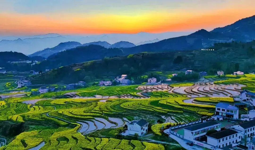 当婺源彼处的油菜花迈向接近尾声的阶段,罗平那儿的油菜花已然表露衰落之态时,汉中此地的油菜花才如破竹而出竹子一般突然大大地开放,在那万亩油菜花海当中某些灰白颜色的屋舍装点衬托。这些屋舍靠着山挨着水,层次清晰分明,景致如诗又似画,美得没有办法用言语来形容。