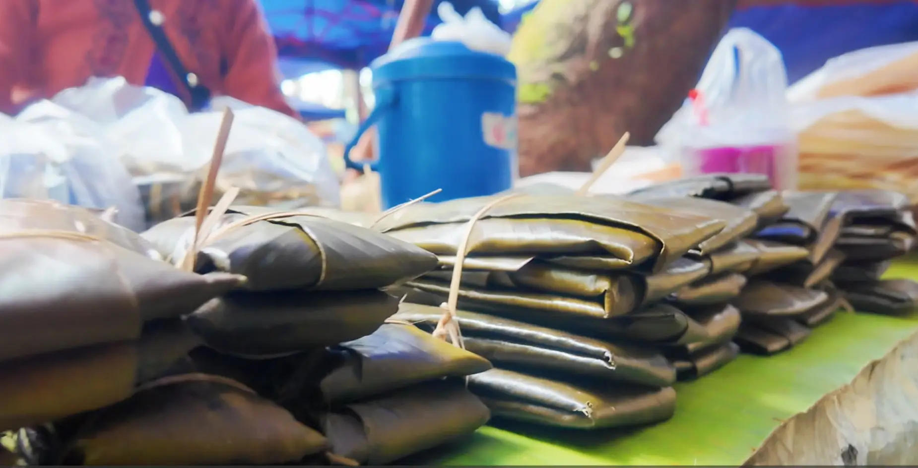 富有地方特色的云南小吃,有被芭蕉叶包裹着进行蒸制的、口感软糯香甜的泼水粑粑,还有炸蚂蚱,这些都无一不展现出傣族饮食文化的多元。