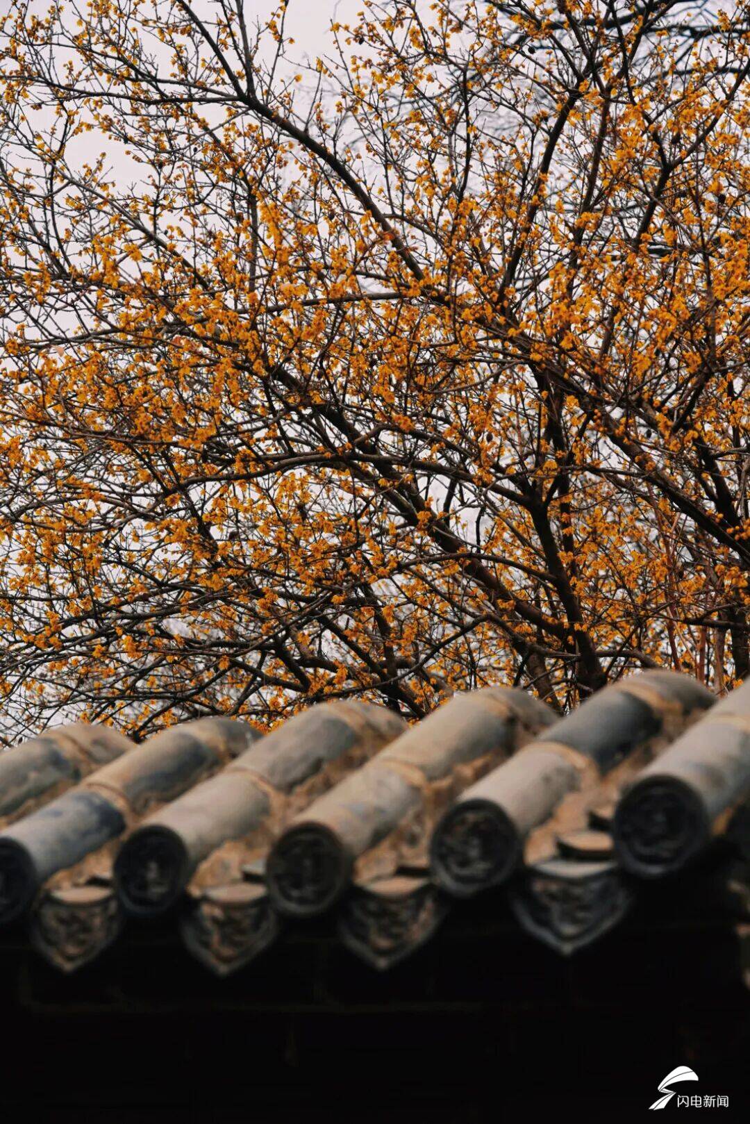 日暮时分天色逐渐变沉,寺院之中的灯一盏接着一盏逐渐亮起。那暖黄色的光透过糊窗户的纸慢慢弥漫出来,和蜡梅呈现出的金黄之色、红墙所具有的厚重之感相互融合。山中的风依旧寒冷刺骨,然而踩在青石板上面的脚步却越发显得从容——在这有着禅意的天地范围之内,冬天呈现出的寒冷被蜡梅化解成为充满意境的诗意,世间的喧嚣被古老的寺庙沉淀成为一片安宁。