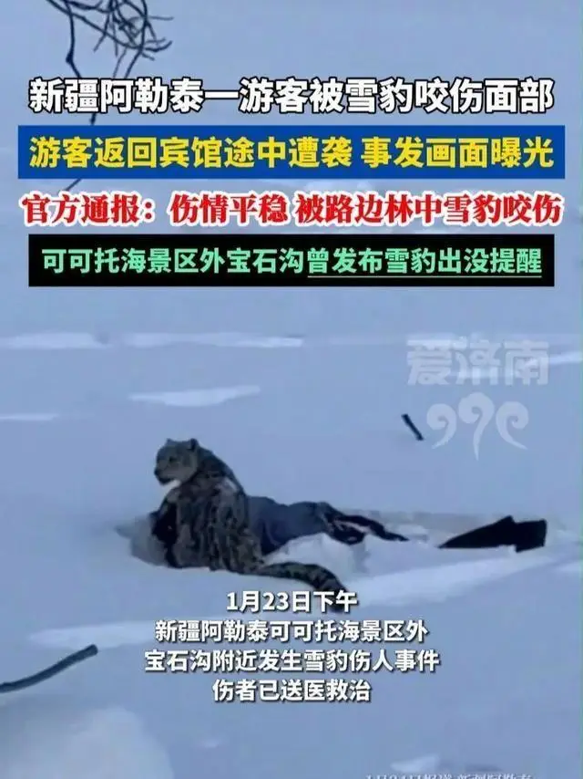 深雪没过了大腿,导致跑不动,关于雪豹主动袭击的这种说法,使得不少网友对伤者表达出同情,甚至还有人去质疑雪豹为什么会出现在含有人类活动的区域。刹那间,“雪山之王野性难驯”“游客遭遇无妄之灾”这样的声音占据了舆论的主流位置,和此相关的话题阅读量在短短几个小时之内突破了一亿,可可托海景区也被推到了风口浪尖之上。