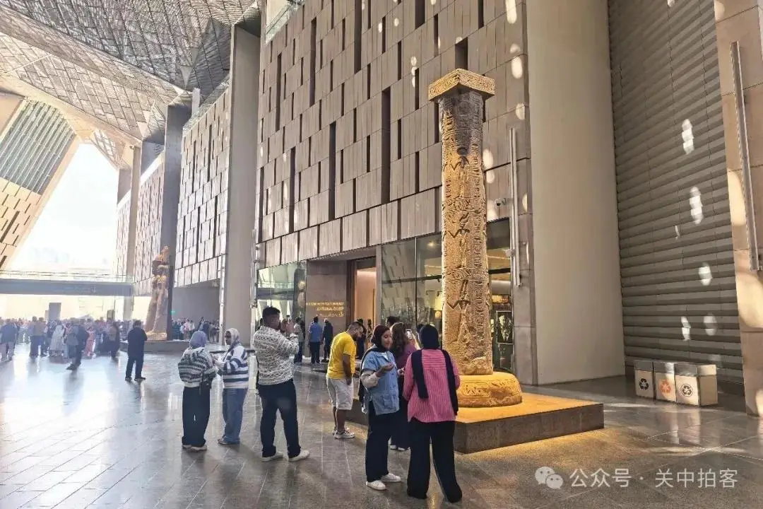 终跻身博物馆园子中间,经历过拥挤不堪的检票口子,面前的广场被围栏给遮挡住,仅露出一座模样高耸的方尖碑顶部尖尖儿。在缝隙那里,朝里头看过去,广场处于仍在进行修缮事务的状态范围中。11月1日晚间时刻,一场盛大无比的开幕式在此处举办完成,埃及总统塞西以及多个国家、好些地区还有一些国际组织的代表团们参与到典礼当中来了。