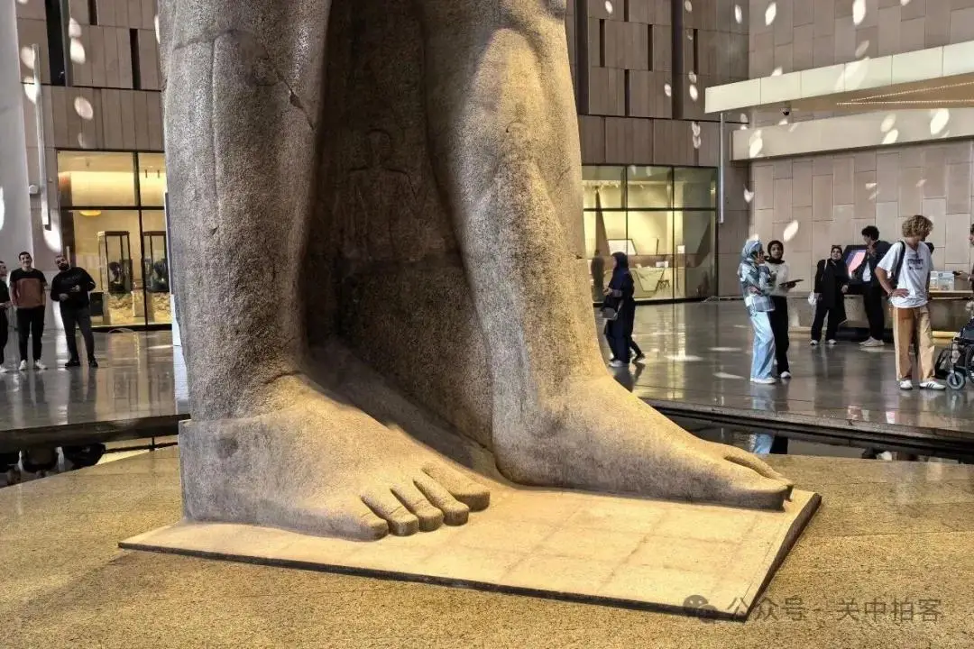步入博物馆的大厅,空间一下子变得开阔敞亮,光线既充沛又明亮。于大厅的正中央,矗立着高大的拉美西斯二世雕像,它高昂着头,挺起胸膛,迈着大步走来。打这儿出发,游客去往不同的展厅,开启大埃及博物馆之旅。
