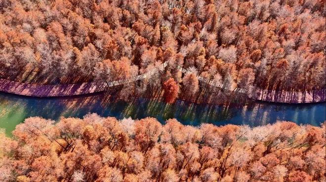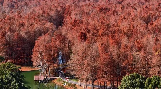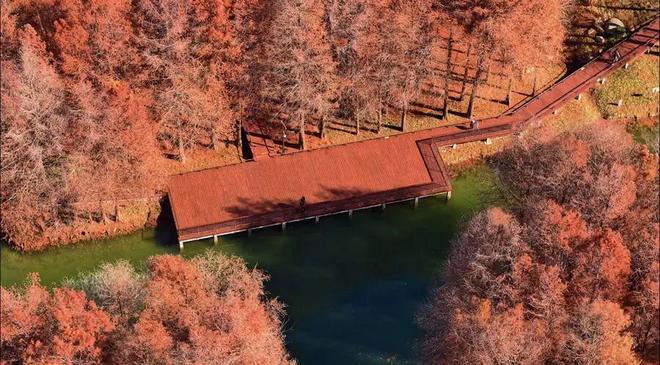 身处最南边的,是市民最为关注的那片“水森林”,其面积为10.7公顷,此地属于中心城区规模最大的湿地杉林景观,红叶期长度能够达到2至3个月。这样一种“地理稀缺性”,也让水森林同“远方、自由、荒野”这些意象产生了连接,进而激发了市民内心最强烈的探索欲望。