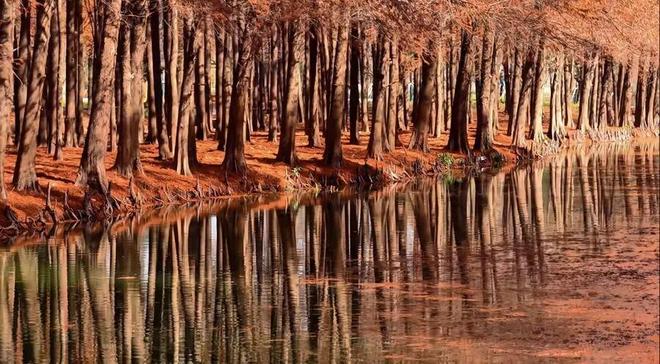 在1月的时候,海岸君去探访那个还处于施工状态之中的“水森林”。杉林正处在观赏的时期,生长在湿地区域的水生植物清晰得能够看见,水面之上倒映着天空以及秋色,从空中飘落下来在地面铺散开。在林中穿梭行走之间,时不时就能够看到科普牌,它讲述着关于长在水森林里的乔木、属于上海本地的蛙类、森林里头碳所具有的汇量等方面的故事哟。