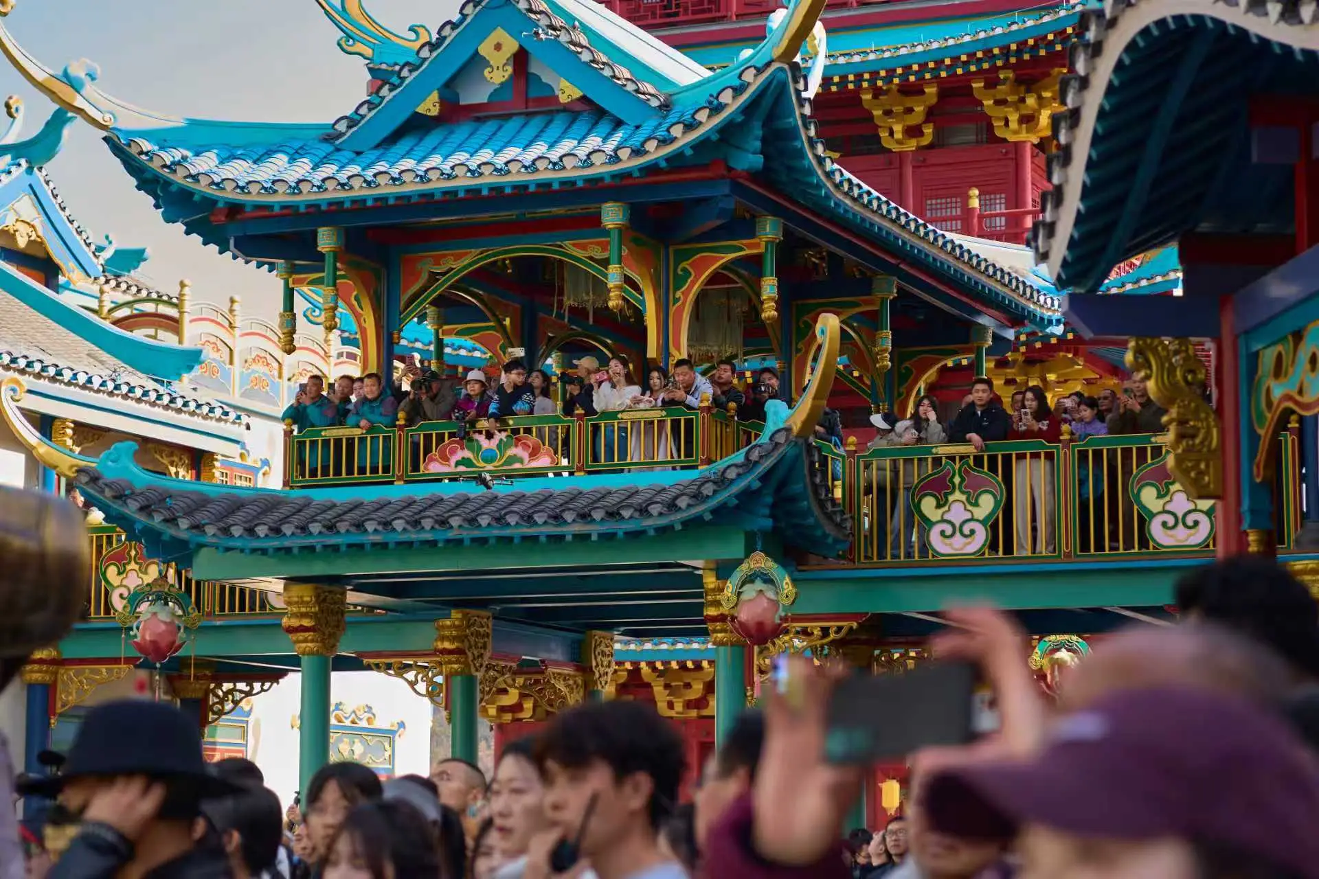 步移景异戏随行,是以场景加演艺的形式呈现,汉水街打破了固定舞台的观演模式,把街巷、广场以及露台都转变为演艺空间,《云岫仙音》《凤首箜篌》等十余场演出在不同点位循环进行上演,游客于自由游览期间,会碰到不一样的剧情故事,去体会“入街即入戏,移步即换景”的行进式观演所带来的乐趣。