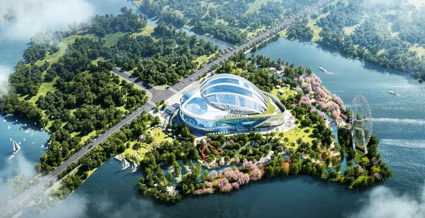 以其充当项目运作的依托,北湖生态公园所具备的生态价值以及功能配套同等重要。那儿身处城市一级通风廊道这个位置,承受着雪山融水的流入,并且作为成都城市范畴内的观鸟中心,众多鸟类成群结队地飞翔聚集于此,自然条件优越非常明显。游客在逛完海洋馆之后能够通过步行的方式到达北湖公园进行露营享受景色观摩的活动,达成室内外场景毫无间缝的过渡转换。