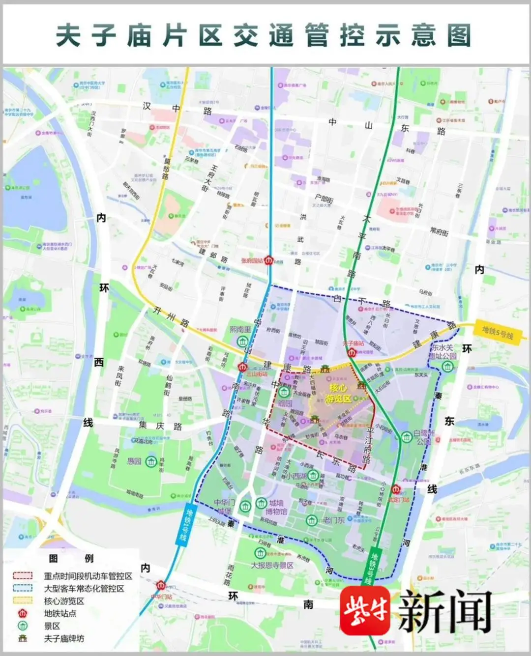 对于交通管控方面,警方把车辆报备的相关事项给明确了。从2月15日开始,夫子庙片区交通优化提升的措施正式开始实施了。建康路、中华路、长乐路、平江府路合围的区域里面(包含平江府路),在管控的时间段之内是禁止机动车开进去的,不过公交车、景区接驳车辆和区域内单位居民去报备的车辆是除外的。建议游客优先选择公共交通出行会更加便利一些。