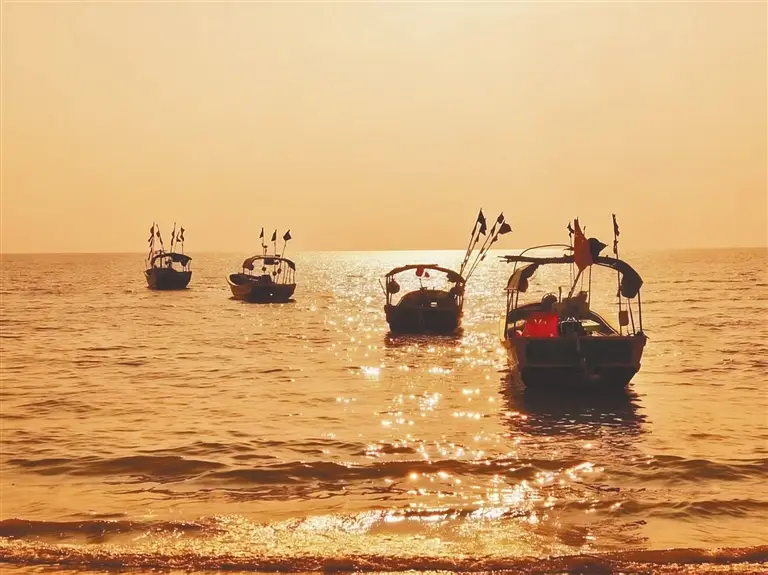 利章港在东方,渔船与那夕阳一块构成了一幅唯美画面,拍摄者是海南日报全媒体记者王泽宇。 摄。