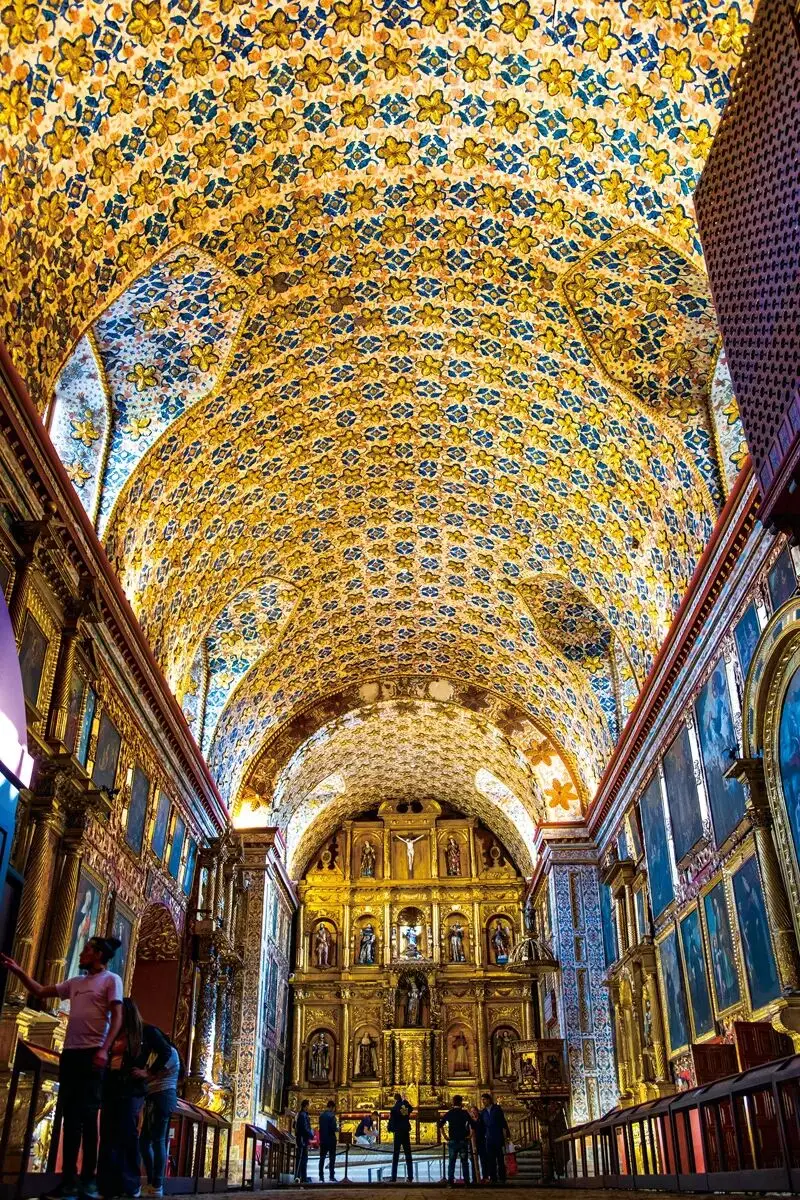 圣弗朗西斯科教堂里摆放着三层阁楼堆叠而成的金色圣坛