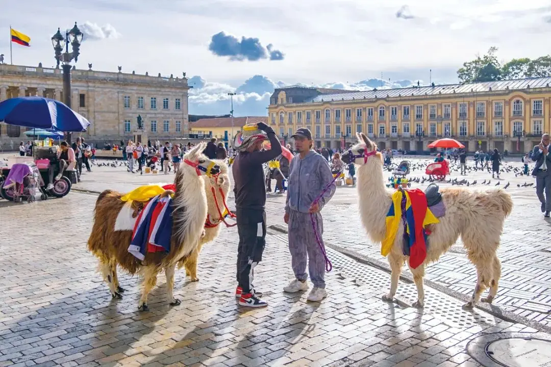 玻利瓦尔广场上供人合影的羊驼