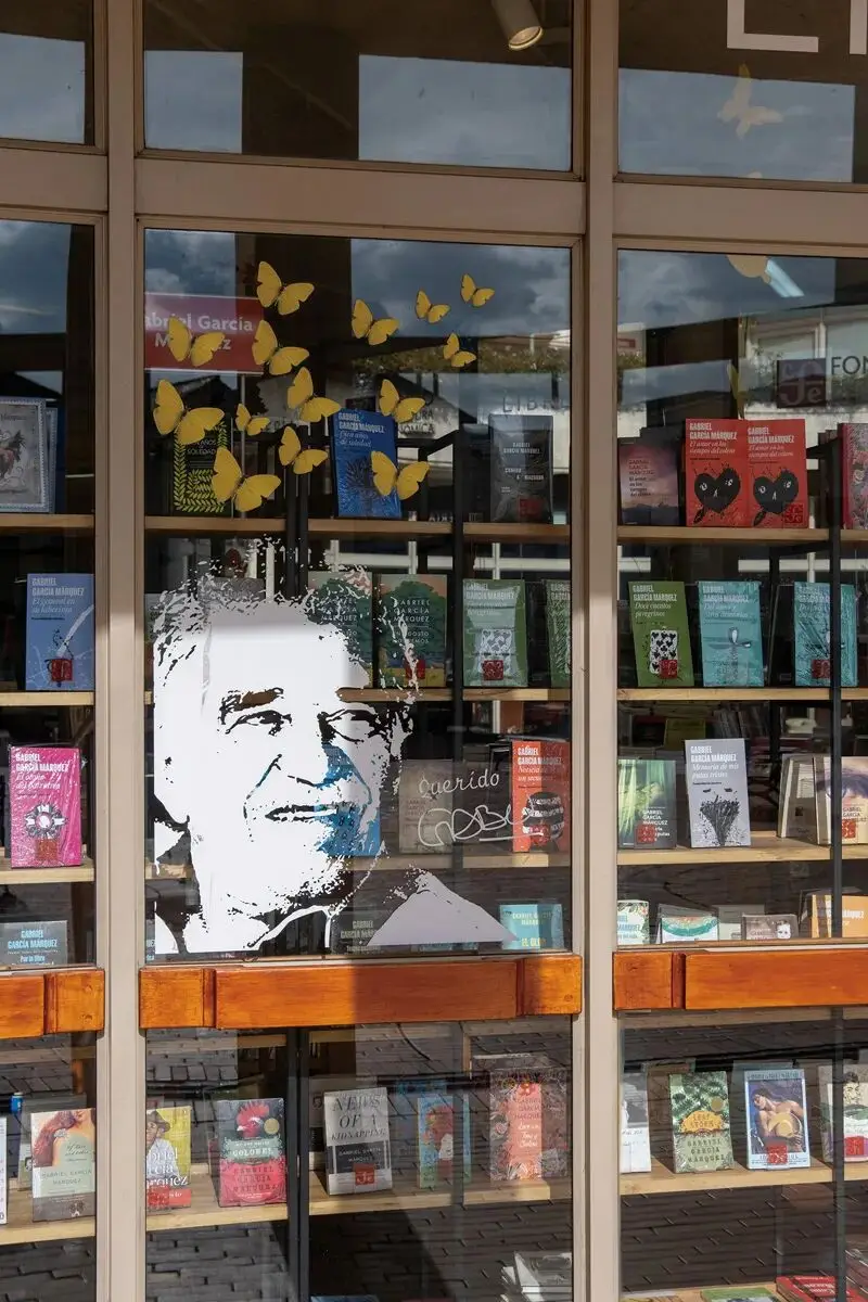 马尔克斯文化中心一楼书店里的哥伦比亚文学巨匠马尔克斯作品墙