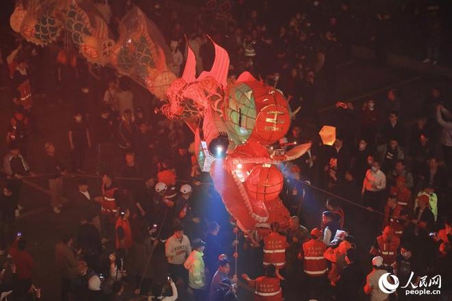 元宵之夜,在福建省龙岩市连城县,进行了“姑田游大龙”的表演,由人民网记者李唯一拍摄。