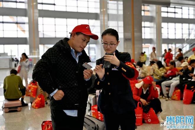 与此同时,兴义南站于进站口处,加强了值班值守工作,在候车室这个区域,也加强了值班值守,在检票口这般关键点位,同样加强了值班值守,以此做好客流引导这一工作,做好秩序维护这项事务,做好重点旅客帮扶服务这件事情。站内公告大屏,实时更新列车加开信息,出站指引牌,也实时更新列车加开信息,方便旅客清晰掌握出行动态,确保游客在高峰期间顺畅出行。