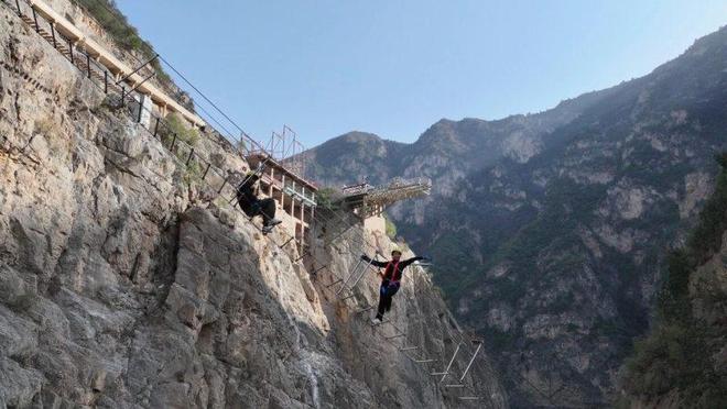 飞拉达所指的是岩壁探险或者铁道式攀登,它属于一种攀岩运动,这种运动是要借助钢扶手、脚踏以及固定缆索等器械在岩壁上进行行进。据了解得知,该飞拉达项目整个路程是550米,它划分成三个难度等级,当下只开放了中级线与高级线。当中中级线的长度有370米,售价是168元,它涵盖了钢索桥、云朵桥、垂直手攀架等5个体验项目;高级线的长度为494米,售价是218元,它是在中级线路的基础上增添了郑国云梯、峡谷木板桥等项目,其难度更大、体验的时长也更长。