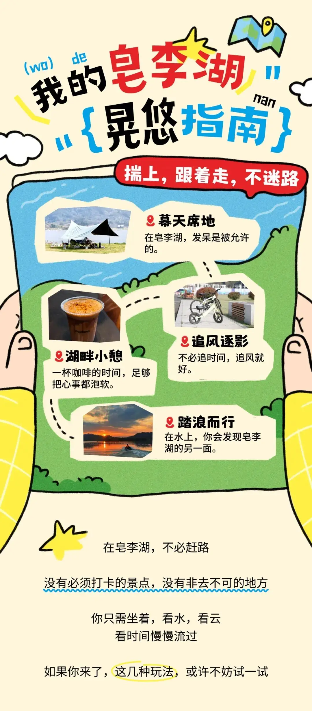 不必追赶速度,享受湖畔风光就好。