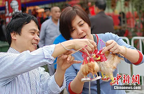 深受游客喜爱的工艺品“波罗鸡”,在广州黄埔举办的堪称千年盛会的庙会上“波罗诞”,(资料图)