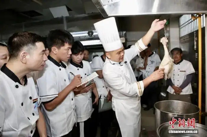 在广东中山,有名厨导师就白切鸡做法要点展开讲解,这是资料图,由中山市人力资源和社会保障局提供了图片。