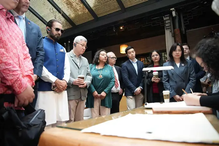 阿根廷、巴西、法国、尼泊尔、新加坡、土耳其等国驻成都各个总领事馆之中的各位领事官员,步入成都文殊坊那有着深厚历史文化底蕴的街区,以及经典川宴传承基地“荣乐园”,以沉浸式的方式去感受四川非遗所具备着的独特魅力,并且要在实地切实体验外籍人士于四川地区在支付方面所享受到的便利化服务。