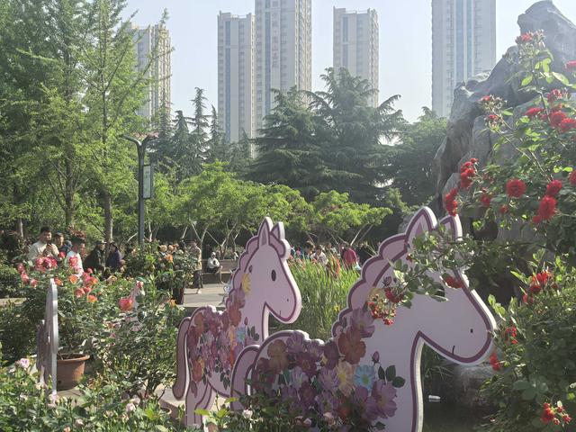 西广场把“萌趣花马 + 浪漫花海”当作视觉核心,将马年生肖元素跟月季主题精巧地融合在一起 ,塑造出有“春日童话感”且带有“沉浸式赏花”特点的清新浪漫场景 ,又进一步对“风遇月季 春满绿城”的美好意境做了诠释。