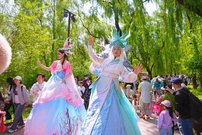 除此之外,五一限定的,称得上“潮起东方”的国潮主题演绎,令人惊艳地出现在众人眼前,古韵国风与神话意境相互融合,只要踏入一步,就仿佛进入了一幅画卷之中,能沉浸式地遭遇东方浪漫。新晋的有人气的明星熊宝,名为“憨憨”的那个,带领着萌宠天团,开启了充满趣味的巡游来迎接宾客,它软萌可爱,治愈力十足,全程都能把假期的欢乐给包揽下来,进而成为了五一出游必定要去打卡的亮点之处。