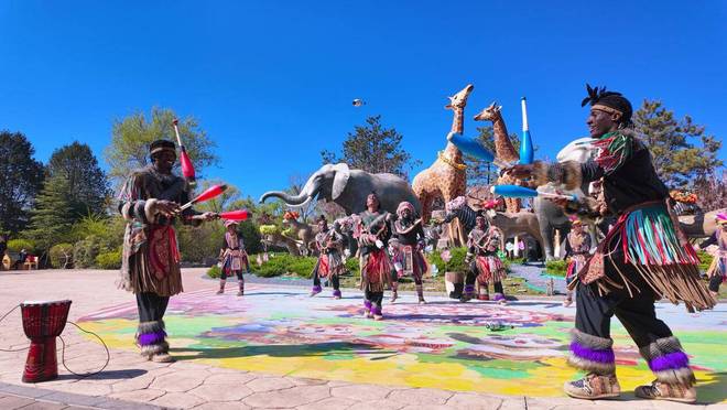 刚全新推出的节点特色演艺,有着重磅加推的情况,亮点众多、新意满满。在百兽迎宾广场,每天都会准时去上演一场名为「济野全明星」的迎宾大秀,其中有激昂的非洲鼓乐,还搭配着活力四射的热力歌舞,能够为前来游玩的游客解锁进入园区后的第一重惊喜。原生态部落的舞姿以动感的方式进行演绎,节奏铿锵有力、现场氛围感十足,能瞬间把全场的欢乐氛围给点燃。